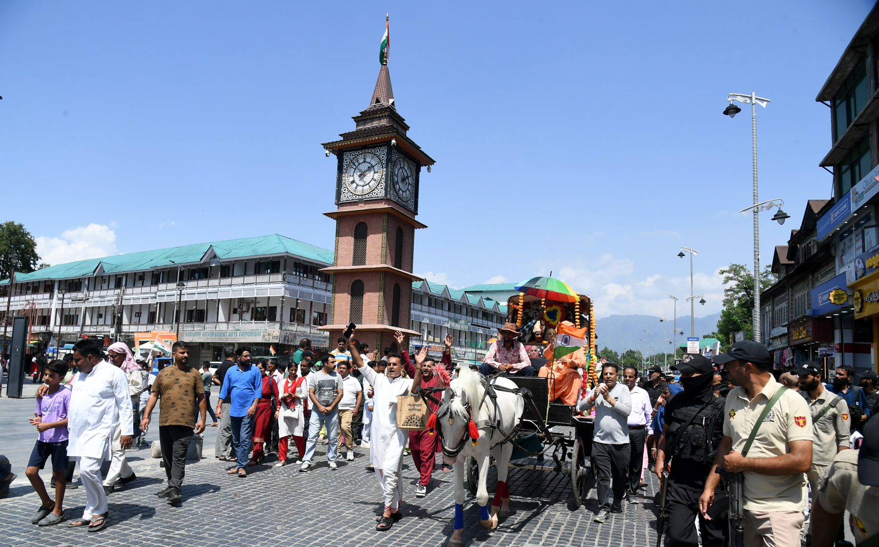 In Pictures: Devotees celebrate Janmashtami with grand procession in Lalchowk, Srinagar