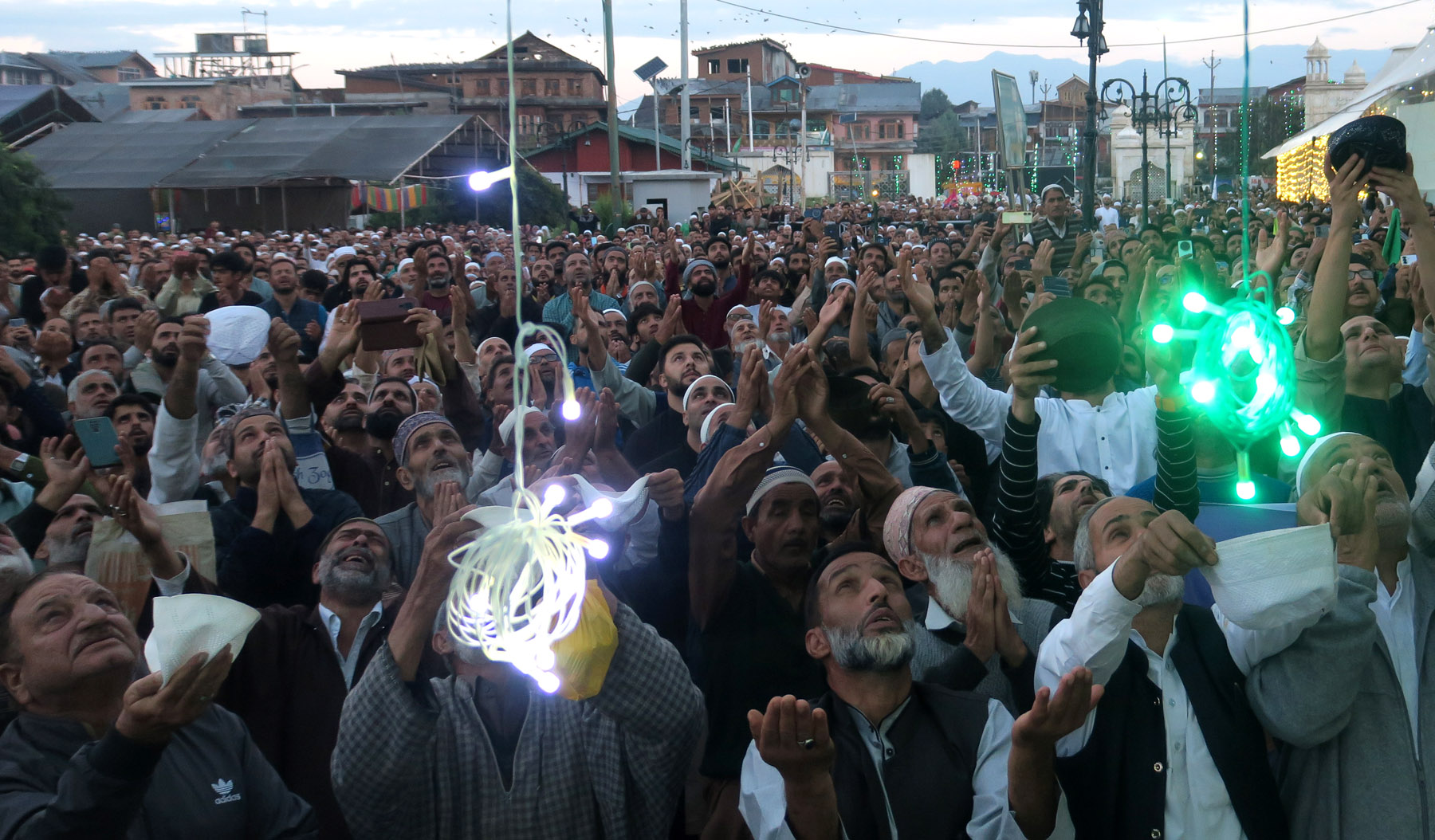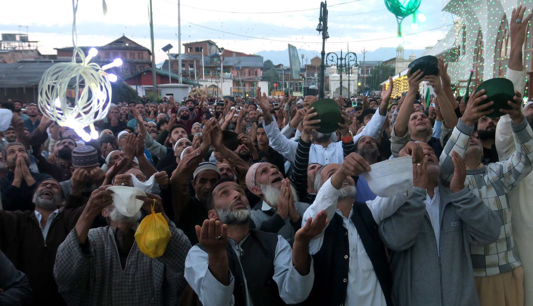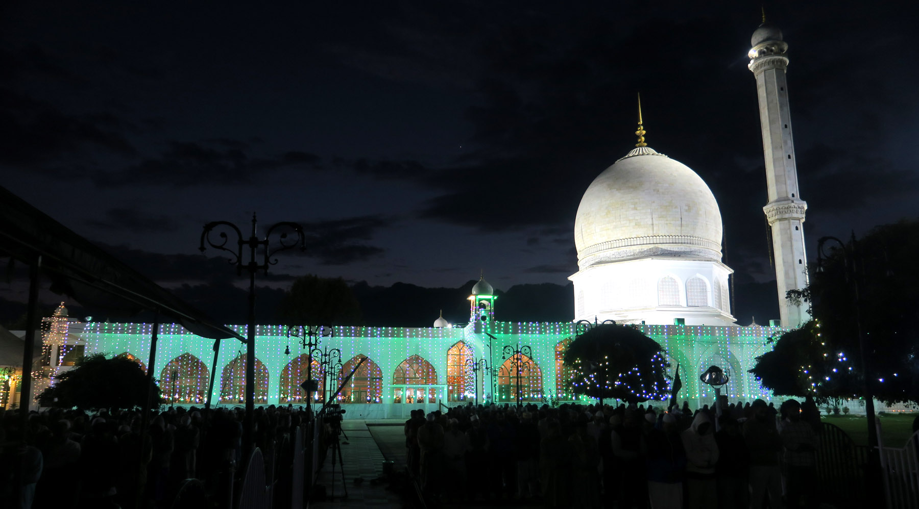 Srinagar, Sept 06: Kashmir witnessed massive night-long religious gatherings on the eve of Eid-e-Milad-un-Nabi (SAW) as thousands of devotees assembled at Hazratbal and other shrines across the Valley.