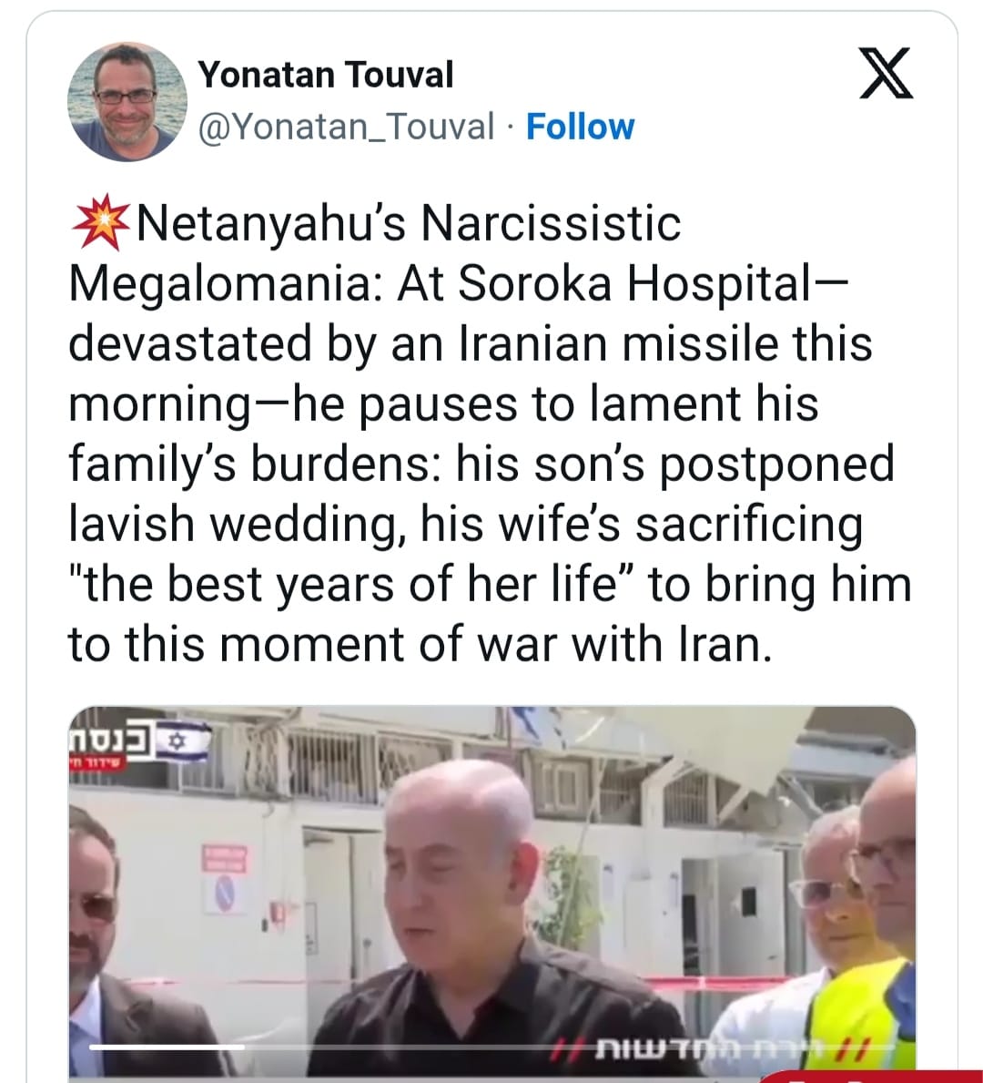 Speaking on June 19 outside the missile-hit Soroka Medical Centre in southern Israel, Netanyahu attempted to compare Israel’s current situation to Britain’s endurance during World War II.